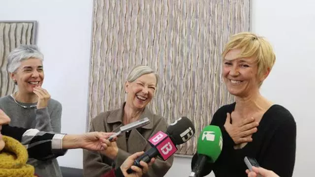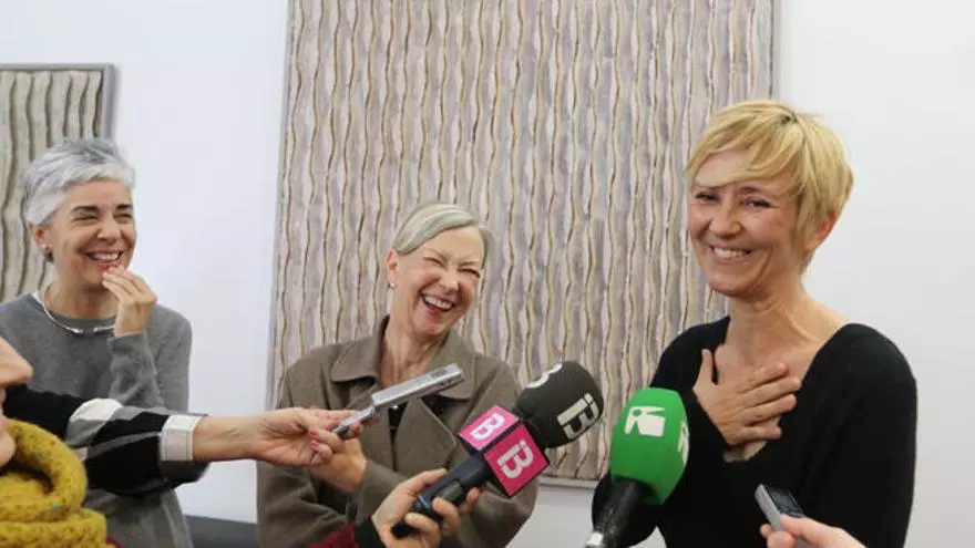 La hija del pintor fallecido, Suska Pagliari, habla con los medios junto a su madre, Lilli Kosola y Elena Ruiz Sastre. / J. A. riera