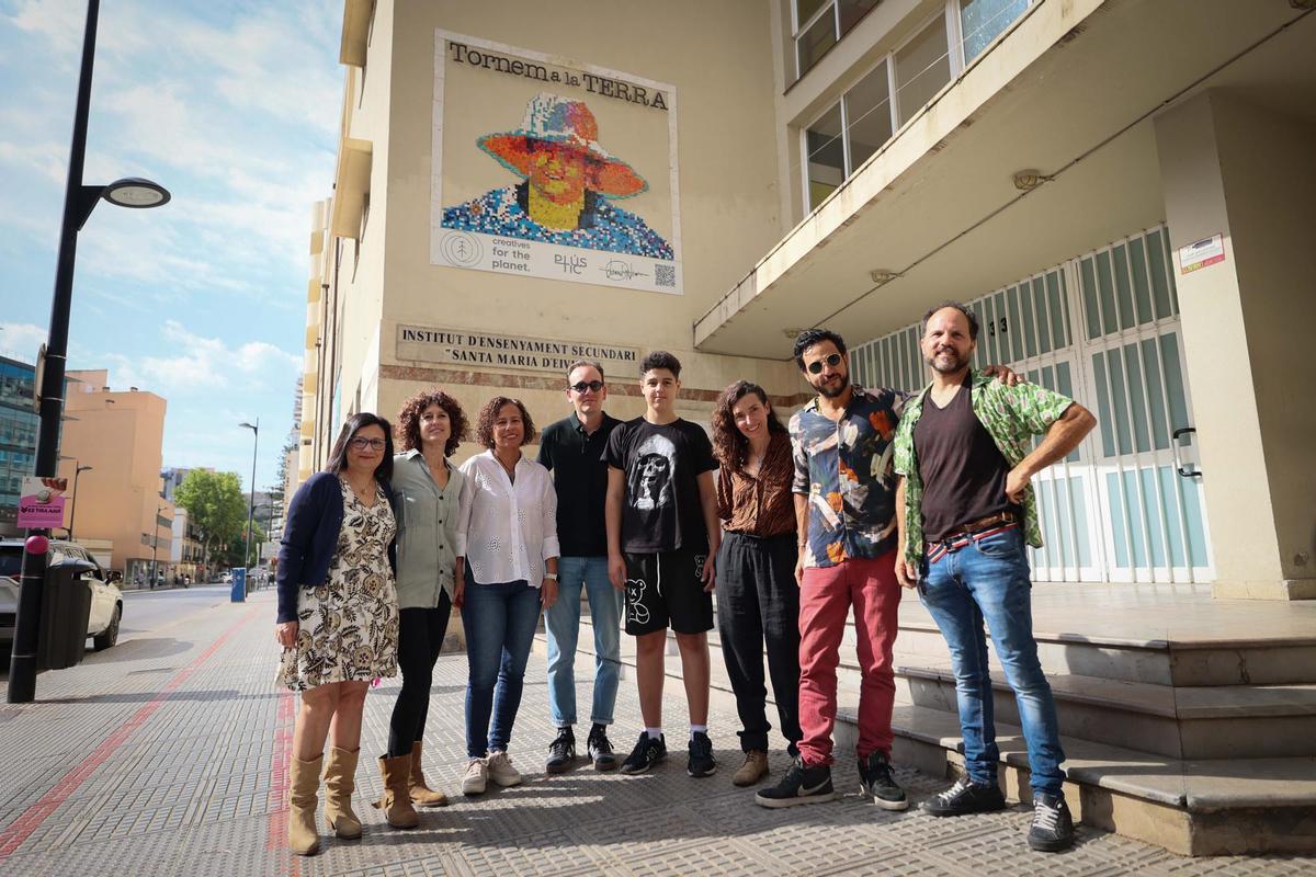 Un mural de tres metros de alto por 3,25 de ancho elaborado con 15.000 tapones de plástico reciclados convertidos en 3.700 píxeles. Esta es la nueva creación artística titulada ‘Tornem a la terra’ que decora desde ayer la parte exterior del instituto Santa Maria en la avenida Ignasi Wallis, un mural que se presentó ayer, apenas un par de días antes de la conmemoración, mañana, del Día Mundial del Reciclaje.