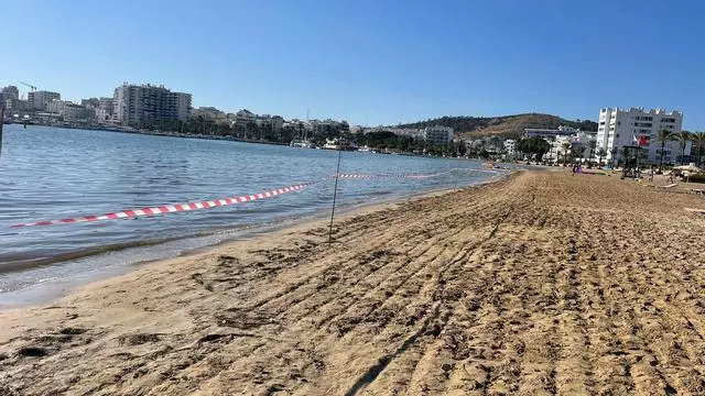 La playa, cerrada al baño. / Ayuntamiento de Sant Antoni.