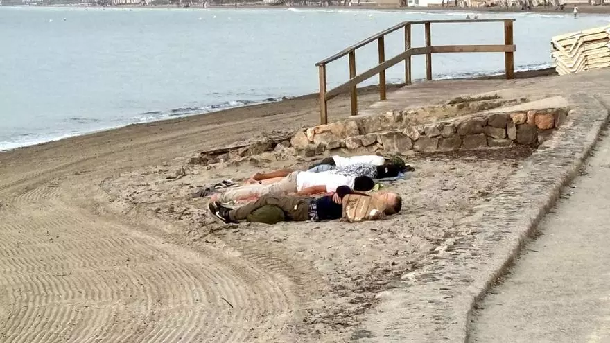 Es difícil encontrar un sonido más relajante que el del mar para quedarse dormido y quienes aparecen en la imagen lo aprovecharon a la perfección tendidos sobre la arena. Sin embargo, esta experiencia tiene su riesgo porque la máquina limpiaplayas tuvo que rastrillar con cuidado de no pasarles por encima.
