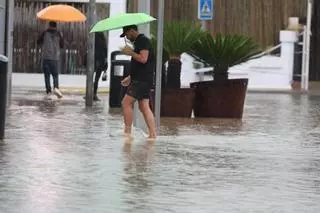 Una persona camina por una calle inundada en Platja d'en Bossa en una imagen de archivo / J.A. Riera