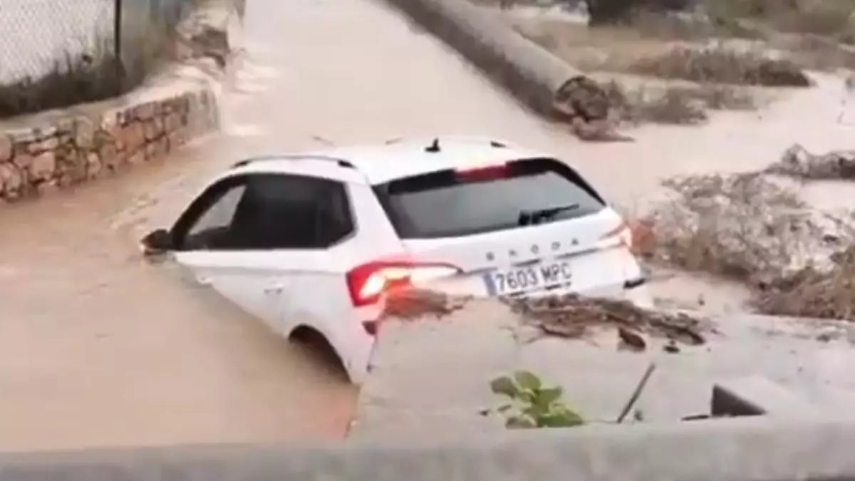 Una persona atrapada en su vehículo en un paso subterráneo de la carretera EI-20 de Ibiza, la autovía del aeropuerto, a causa de las lluvias torrenciales ha sido rescatada este domingo por la mañana por la Guardia Civil.